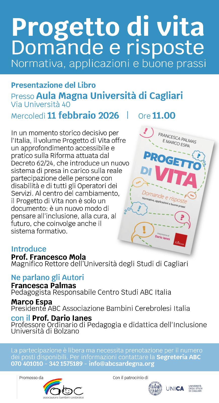 Il Magnifico Rettore Francesco Mola ospita la presentazione del libro “Progetto di Vita” di Francesca Palmas e Marco Espa. Un volume che è una guida chiara e concreta per comprendere e attuare la Riforma sulla disabilità, partendo da cuore del cambiamento: il Progetto di Vita.