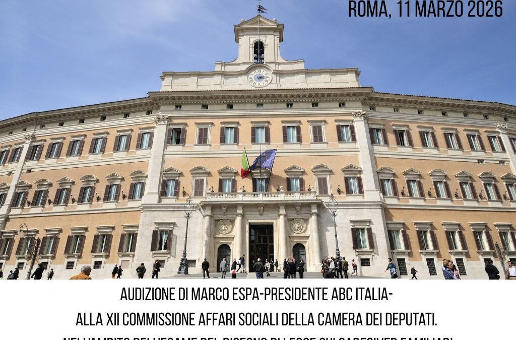 Oggi il Presidente Marco Espa e la Responsabile del Centro Studi ABC Italia Francesca Palmas sono stati auditi dalla XII Commissione Affari Sociali della Camera dei deputati, presieduta dall’On. Ugo Cappellacci, nell’ambito dell’esame del Disegno di Legge sui caregiver familiari, portando il contributo e le proposte dell’Associazione Bambini Cerebrolesi.